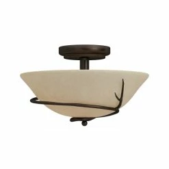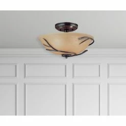 “Branchingβ out from a large collection of matching lamps and fixtures, this semi flush mount has a distinct design personality that perfectly balances the combinations of rustic lodge-inspired looks with the elegance of cottage chic design. Animated and vine-like, natural-looking twigs encircle the amber scavo glass shade, contrasting the light amber color with the rich oil rubbed bronze and giving an airy feel to each piece. With a wide variety of matching lamps, wallchieres, pendants and other pieces, this family is truly a rustic designerβs dream come true.