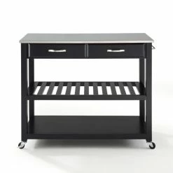 Keep all your meal prep necessities close at hand with this sleek and sophisticated kitchen cart. The rugged construction allows for efficient work, while the black finish is bold, graceful, and timeless.