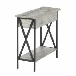 Add functionality to your home with the Carbon Loft Ehrlich Flip-top End Table with Charging Station. Featuring a flip top that reveals a convenient charging station as well as storage space for your remote controls or favorite book. Charging station includes two standard outlets and two USB ports which can easily charge your phone, tablet and even your laptop. The cable management hole allows you to store multiple devices on the table without damaging cords. The power supply cord is 6 feet in length giving you the room you need to display your end table where you choose. Also includes a bottom shelf for additional storage or display.