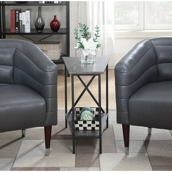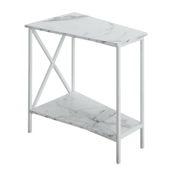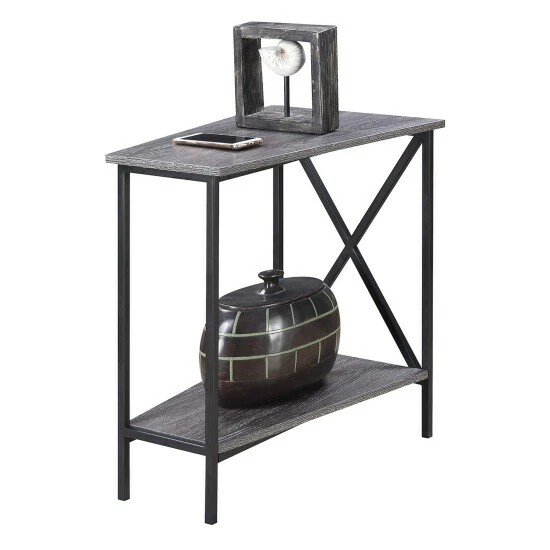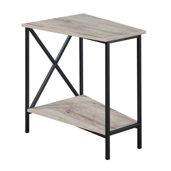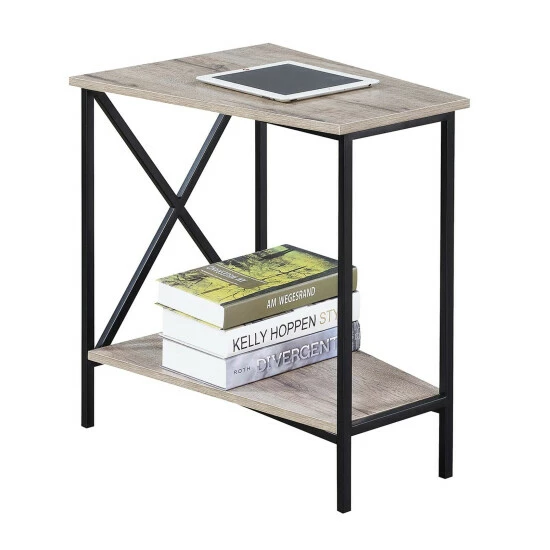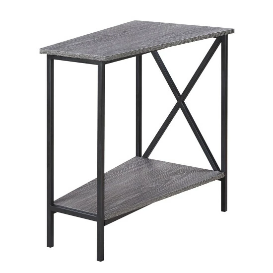 Give your space a makeover with the Carbon Loft Ehrlich Wedge End Table. This piece allows you to create usable space between two chairs with its unique wedge shape. Featuring a bottom shelf for additional storage paired with open concept styling this piece is practical and stylish. Constructed with a powder coated metal frame the Tucson Wedge End Table will provide the durability and stability you need. Available in multiple finishes this contemporary end table will easily complement any new or existing decor.