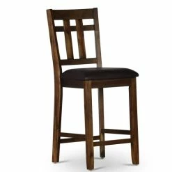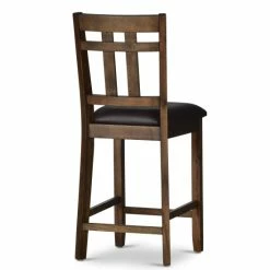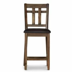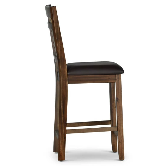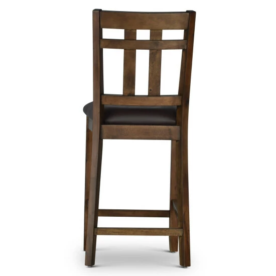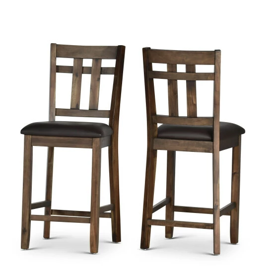 Complete your farmhouse-style or craftsman kitchen with this set of two counter chairs at your island or peninsula. Faux leather seats offer softness while being durable and easy to clean, and the rugged wood frames have a distressed finish to bring a rustic, vintage touch to your decor.