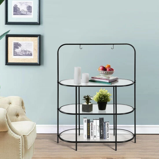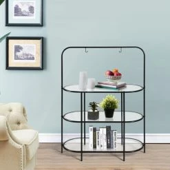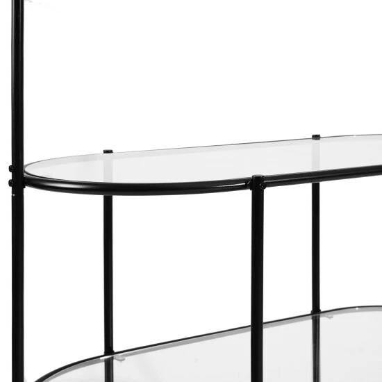 Old world refinement meets modern pizzazz in this lovely and chic console table. The sleek, gentle lines are perfect for decorating hallways and bar areas, and the glass shelves ensure a perfect party or delightful decor options.