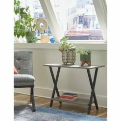 Bring in a touch of industrial elegance to your space with this chic and sleek little sofa table. The durable and innovative table is short enough to fit beneath your window, utilizing extra space while offering a place for decor, books, and other treasures.