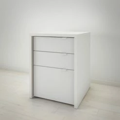 Make the most of your dorm room or home office with this two-piece office set. Finished in white melamine for durability and easy care, this desk mounts directly onto the included file cabinet for a compact fooprint that’s ideal for smaller spaces.