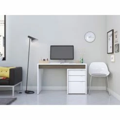 Make the most of your dorm room or home office with this two-piece office set. Finished in white melamine for durability and easy care, this desk mounts directly onto the included file cabinet for a compact fooprint that’s ideal for smaller spaces.