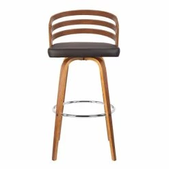 Make a splash in your kitchen or bar with this delightfully chic bar stool. The brown faux leather is matched perfectly with walnut veneer for a serene and versatile look sure to enliven any space.