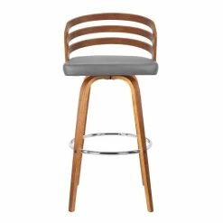Make a splash in your kitchen or bar with this delightfully chic bar stool. The grey faux leather is matched perfectly with walnut veneer for a serene and versatile look sure to enliven any space.