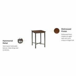 Enjoy the timeless appeal of this simple yet stylish table from Carbon Loft. Constructed from mahogany veneers and paired with hammered metal detailing, this bistro table exudes character and charm with its chestnut finish wooden top.