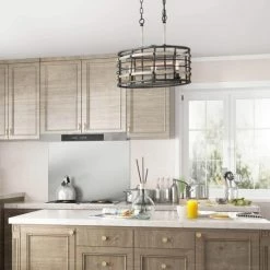Made of metal and glass, this robust and fashionable piece offers stylish illumination with a pop of retro charm. A faux wood finish offers a pop of elegance, as an adjustable chain allows for multi-functional versatility.