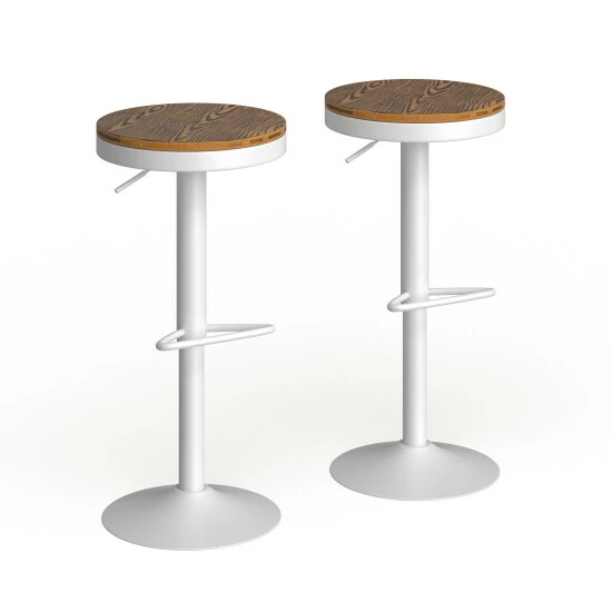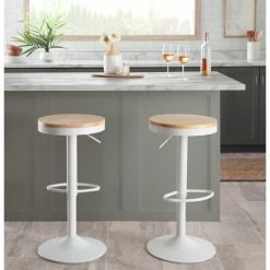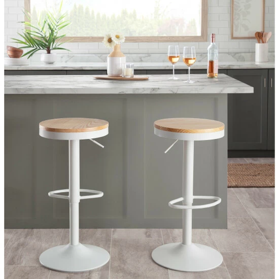 The Goddard Bar Stool is the perfect addition to modern farmhouses or rustic kitchens. The sturdy metal base is adjustable, swivels 360 degrees, and like the solid wood top, features a charming antique finish. Choose from four versatile colors that will complement your dΓ©cor.