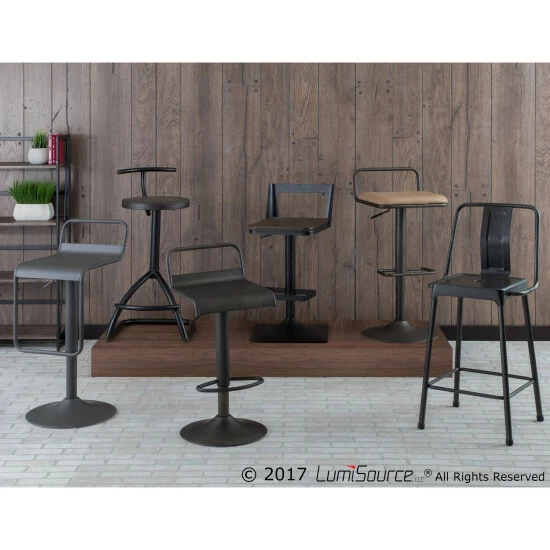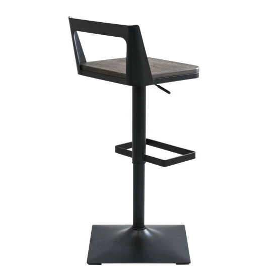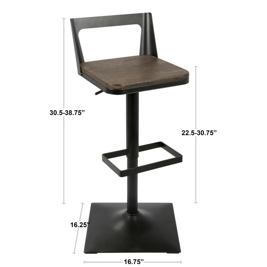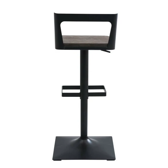 Elevate the style in your home bar or kitchen with the industrial-inspired elegance of this barstool. With a rectangular-shaped open backrest and similar shape continued on the footrest, this barstool is as attractive as it is functional. Made from black metal with an espresso-finished wood seat, this barstool is fully adjustable to suit your needs.