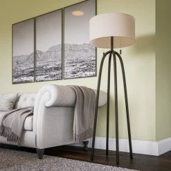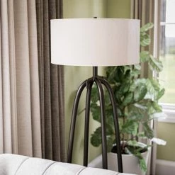 This graceful lamp asserts its presence with contemporary lines and a four-leg stance. A large, wide shallow drum shade and the oil rubbed bronze finish set the lamp apart as a unique design statement.
