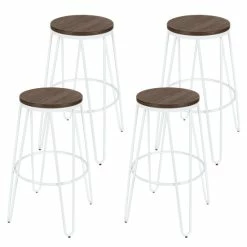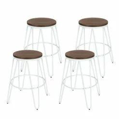Add modern seating to your home with this set of four two-tone wood and metal bar stools from Carbon Loft. This 4-piece set of stools is available in a variety of color options for perfectly complement your home decor while making a stunning statement.