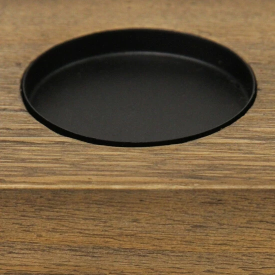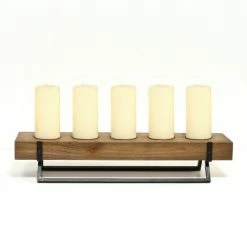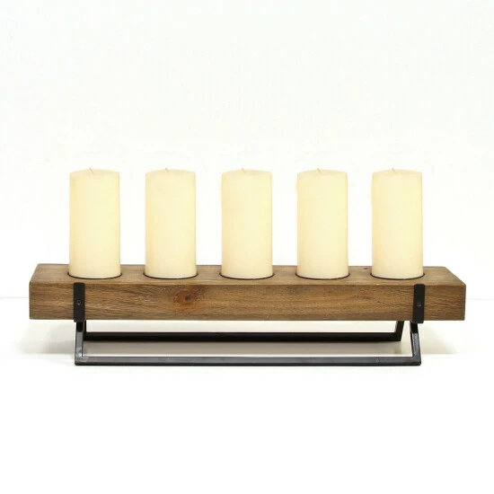 Create an inviting, traditional dining space by placing this candle centerpiece on your dining table. Handmade of wood with a black metal stand, this centerpiece holds five pillar candles. Display your favorite wax or LED candles and foster a warm atmosphere in your home.