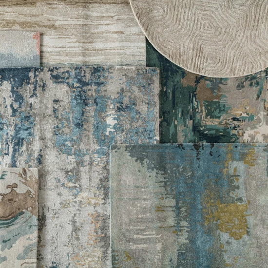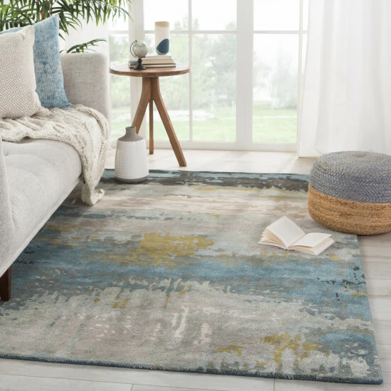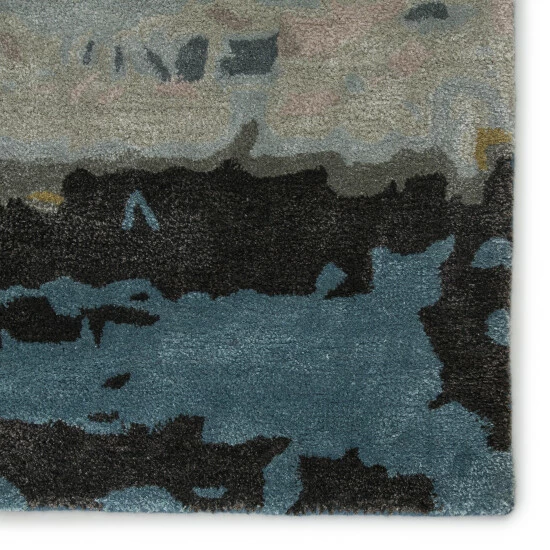 Reminiscent of the soft tones and gentle brushes of a watercolor painting, this rug boasts a blend of neutrals with rich black, blue, green, and grey for an ideal accent. Blended viscose and wool provide a lustrous finish and soft touch for a plush and cozy element you are sure to enjoy underfoot.