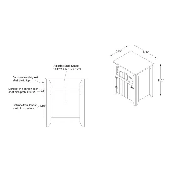 - Overall dimensions: 19.6 inches long x 15.9 inches wide x 24.2 inches high
