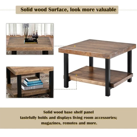 Offer the perfect rustic touch to your space with this distinguished little coffee table. The solid wood slabs are highlighted with a ridged wood pattern and supported by solid iron for a robust and rugged touch sure to be a favorite decor element.