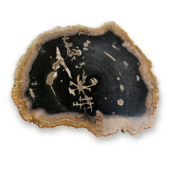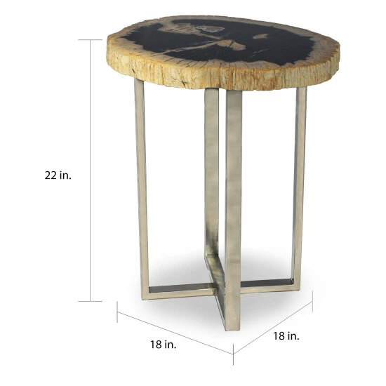 - Material: Solid Natural Edge Petrified Wood Slice, Polished Stainless Steel