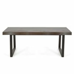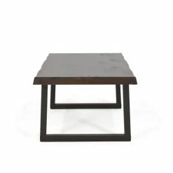 The sled-style legs and two-tone distressed cherry and ebony finish with live edge top give this coffee table a rustic modern vibe. Solid hardwood construction for lasting strength and durability.