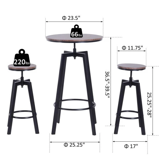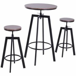 Simple, sleek, and emblematic of industrial design sensibilities, this bistro table and stool set is a lovely addition to any space. The rustic simplicity of the design is met with convenient features like an adjustable height and compact size for use anywhere.