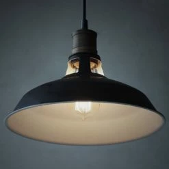 Crafting of solid metal, the pendant lightβs barn shade boasts a rustproof matte black finish on the outer surface while it flaunts a white finish on the inner surface, injecting an industrial vibe to Β your home decor. What makes this pendant light so unique is the hollow design on the upper part of its lampholder and you can directly see the bulb through the hollow part, making the pendant light a amazing addition to your aesthetic.