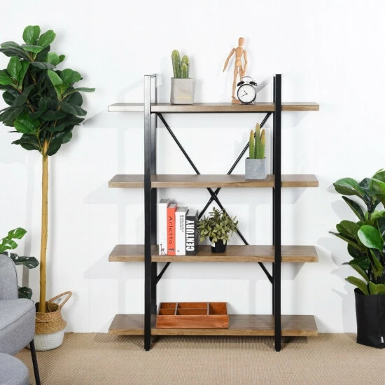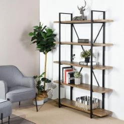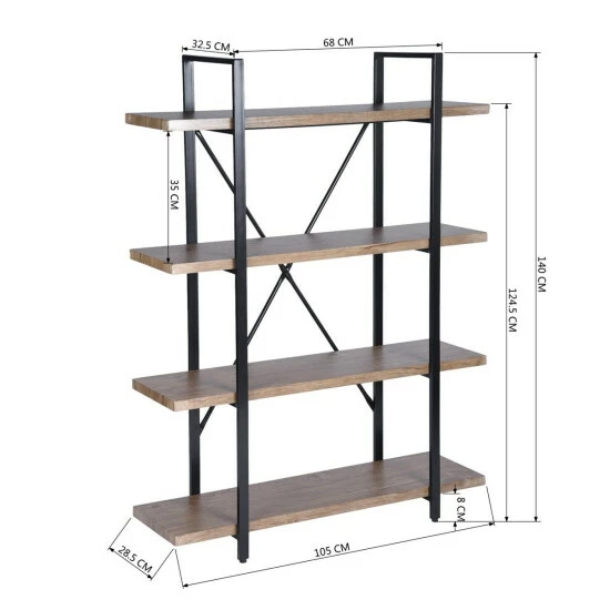 Bring ideal contemporary style to your home with this bookshelf. This Bookcase blends black industrial metal pipes with rustic oak wooden shelves. Lend an stylish touch to your living room, library, home office or workspace, this spacious bookcase lets you keep your reference material, books or collections displayed perfectly.
