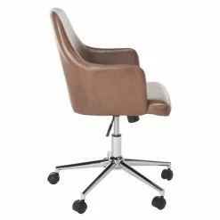 Upholstered in rich, stylish faux leather and designed with a curving, comfortable shape, this Kenton swivel chair is sure to be a hit in any home or office. The Kenton comes in a beautifully neutral color with a chrome finish. The chair swivels and rolls for ease of use in any situation.