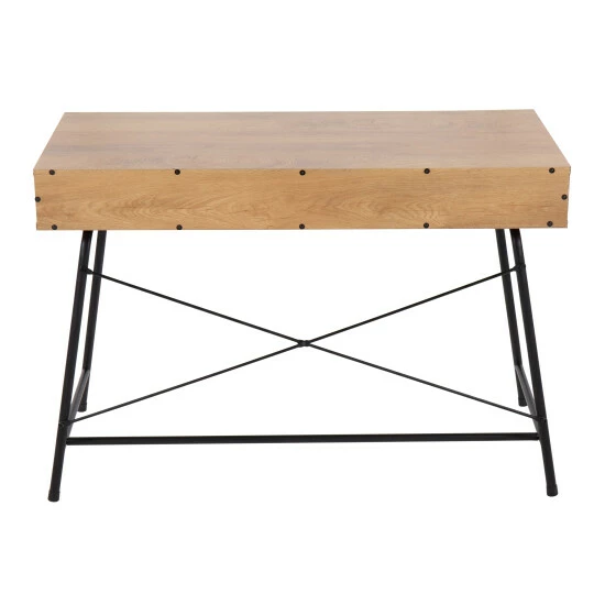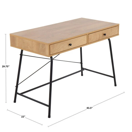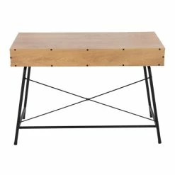 Add industrial style to any office space with the Kerby Desk. Featuring a large rectangular wood top, pull-out drawer for extra storage, and a black metal frame, this desk is perfect for any home office!