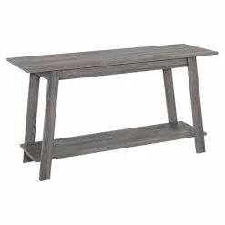 Perfectly versatile with its sleek design and neutral finish, this TV stand is perfectly suited to smaller spaces in need of an entertainment center. The bottom shelf bears up electronic supplies for any and all audio visual needs.