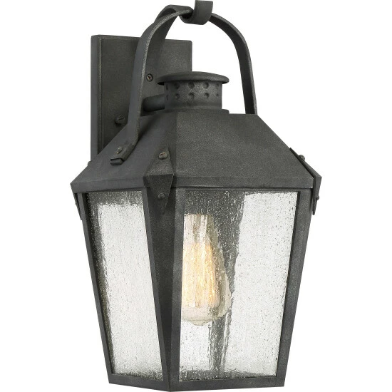 The aptly named Carriage Collection features great style that suits many different homes. All of the details from the metal strap to the diamond-shaped corner accents the clear seedy glass come together to create a classic, timeless design. The depth and richness of the Mottled Black finish gives the appearance of age and time gone by. (Please note that the vintage bulbs are not included but are available for purchase.)