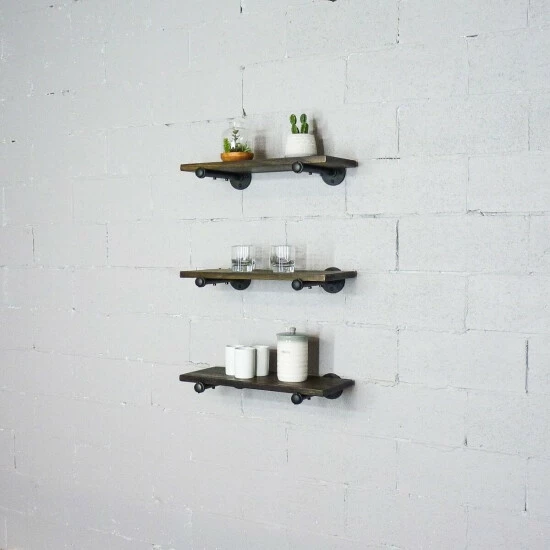 Display your favorite decor or plants with these Kone floating shelves from Carbon Loft. The sustainable wood shelves are paired with recycled aluminum fittings for industrial flair. Choose from three sizes and three finishes to complement your space.