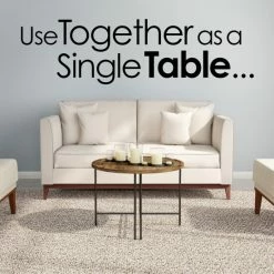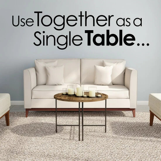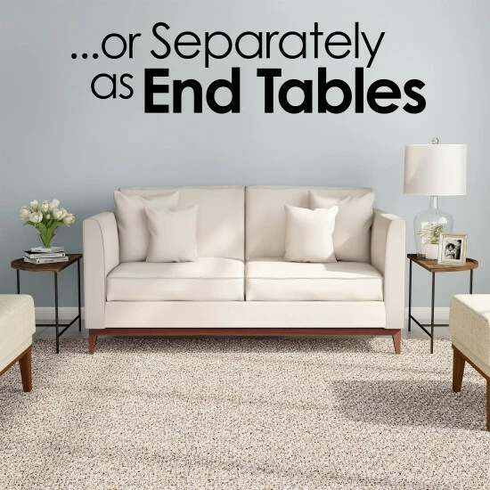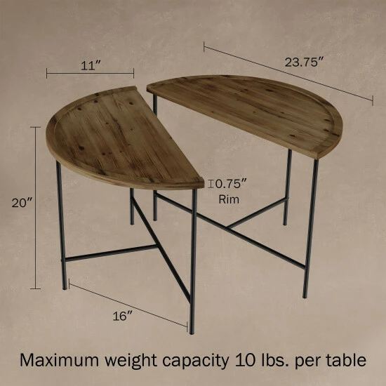 Lovely, practical, and charming, this set of coffee tables is a convenient addition to home decor. The half moon design of each table can be used separately as end tables or together for a graceful coffee table rife with modern farmhouse sensibilities.