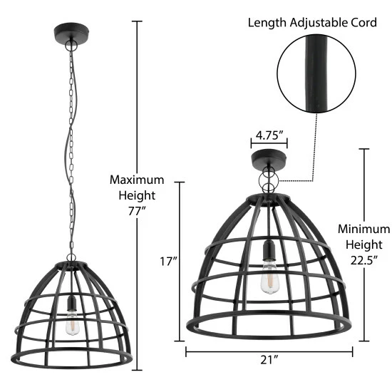 Offer industrial artfulness and eye-catching interest to your space with this bold and graceful pendant. The iron shade in matte black lends itself to a clean-lined look that ensures optimum illumination to any area in your home.