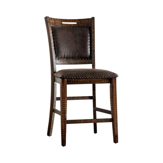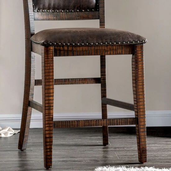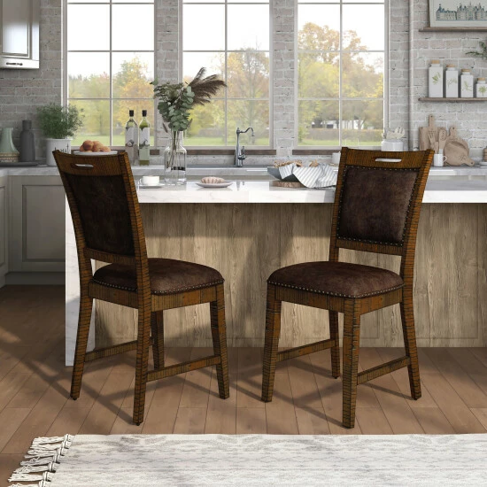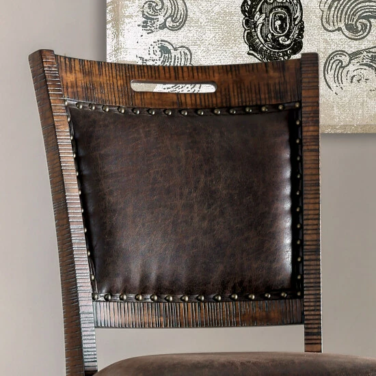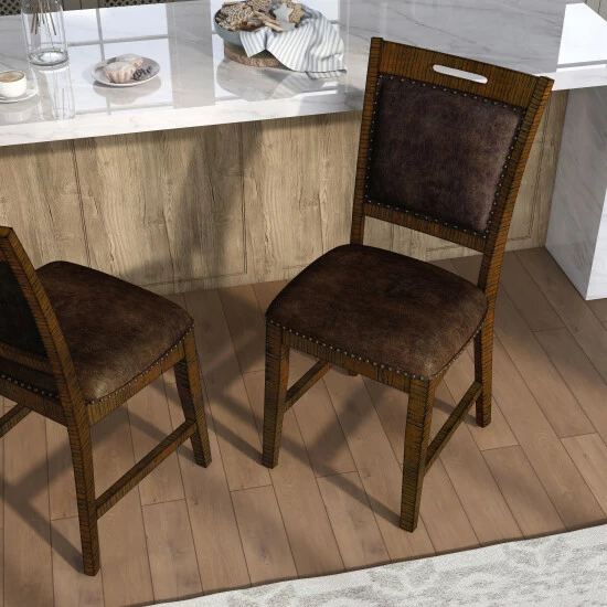 Deliver some interest and warmth to your space with the alluring style and captivating design of this set of chairs. Each chair is finished in light walnut and features a curved seat back and seat wrapped in matching padded faux leather with nailhead trim that ensures years of comfort and eye-pleasing aesthetics.