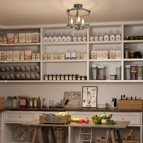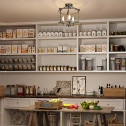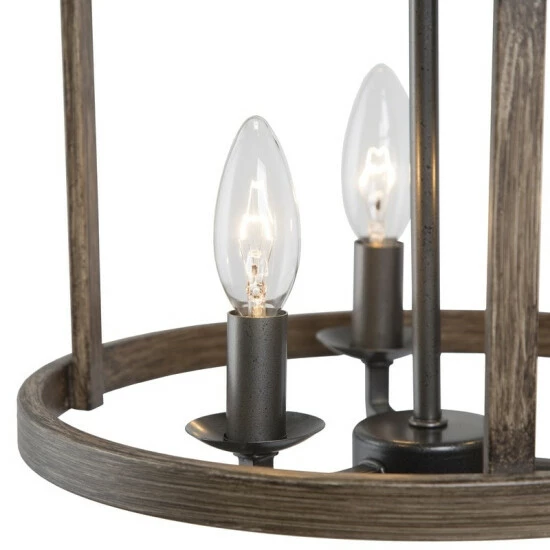 Rustic allure gets a showcase in this bold drum chandelier. The rust and wood-inspired finish lends a vintage feel to the fixture for an artful touch you are sure to enjoy.