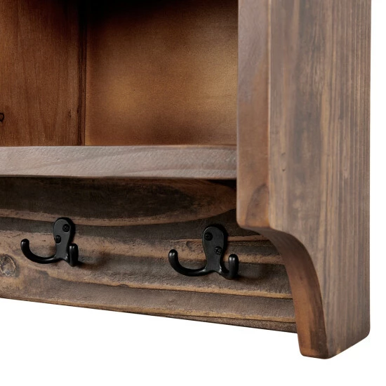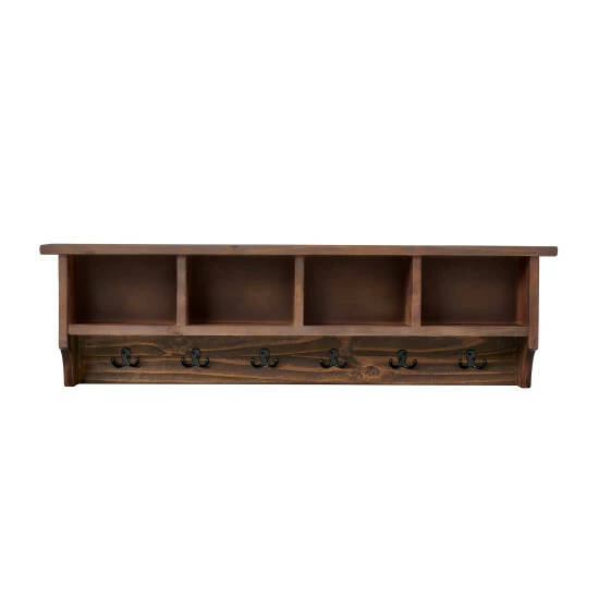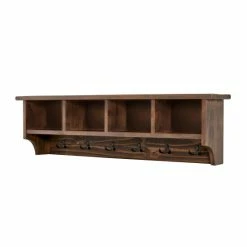 This collection features the exquisite workmanship of a solid wood top with metal legs that will last for years to come. Each piece is constructed of solid pine wood and finished to have the appearance of reclaimed wood. The reclaimed wood finish highlights natural wood variations such as cracks and knots which add to the piece’s character. Β Any item in this collection will add to the rustic industrial style of any space. 48″ Coat Hook has a rustic, modern style. Extremely versatile for your entryway, hall, laundry or guest room. The cubbies allow you to store hats, gloves, etc. and the hooks are strong enough for jackets and packs.Β