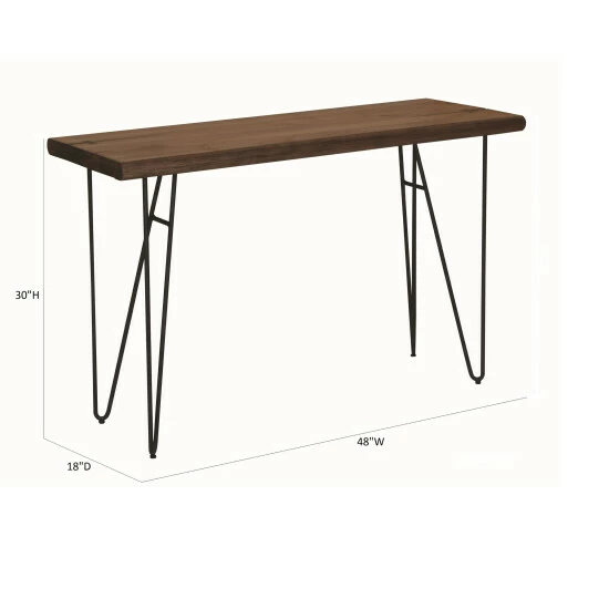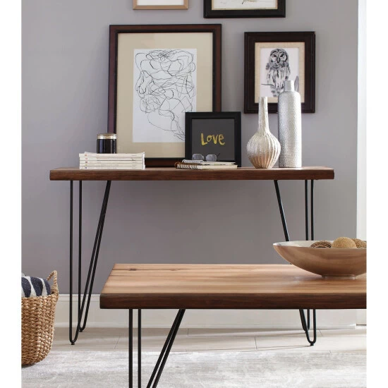 Graceful, chic, and rustic, this sofa table offers an enduring element of mid-century modern flair to any space in your home. Sleek hairpin legs deliver an airy feel that is paired perfectly with the rugged lines of the top, offering a sturdy structure bound to bear up your favorite decor items and treasures.