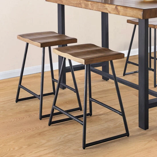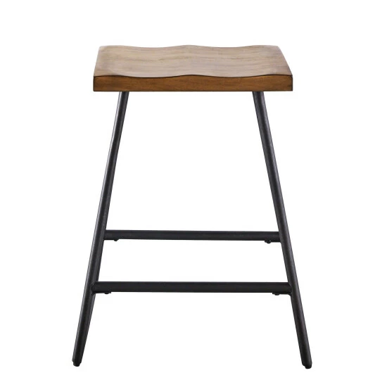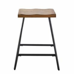 Enjoy the modern rustic style of this backless barstool highlighted by its shaped, distressed natural honey finished seat. Β The sturdy angled, sled style base offers a footrail on each side for comfort and stability.