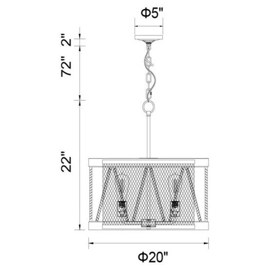 Dimensions: H 11″ x W 20″ x D 20″ – Pewter Finish – Requires 5 E26 Bulbs Max 60 W (Sold Separately) – Comes with 72″ of chain – One year warranty against manufacturers defect.
