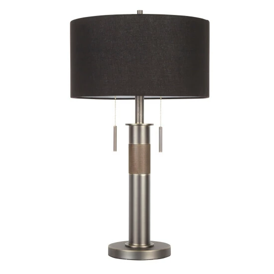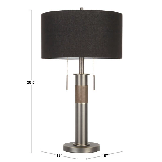Bring light to your space with the industrial flair of the Lupone Table Lamp by Carbon Loft. This lamp gives off great ambient light through a fabric drum shade supported on a sturdy metal construction. With elegant pull chains and subtle textured metal accents, this lamp is perfect for that final touch of modern industrial charm.