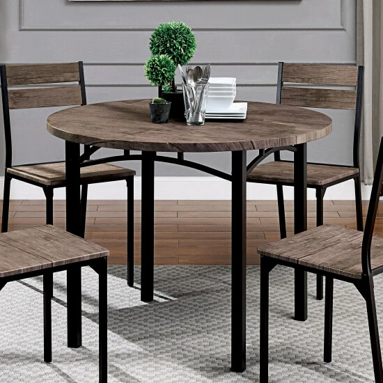 The refined allure of raw materials is on full display in this charming table. Combining metal and wood in a gorgeous display of industrial style, the table features slight cracks and wood grain details that match beautifully with the black metal framework.