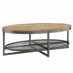 The Carbon Loft Magie Brown Coffee Table is the perfect modern industrial update to any living room. Rub your hands over the solid pine top to feel the natural beauty of the wood, combined with a heavy metal frame, and accented with a lower wire mesh shelf for storage. Featured in a chestnut wood finish with a tarnished silver metal frame. Assembly required.Β
