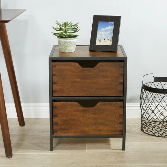 Keep necessities handy with this warm and charming storage cabinet. The two drawers are perfectly suited to functional use, and the attractive design brings a little touch of industrial flair to your space.