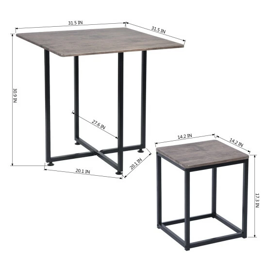 - Table: 31.5 inches long x 31.5 inches wide x 30.9 inches high