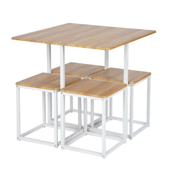 Small Space Kitchens Sets, which is a fabulous addition to any kitchen. Add an elegant and functional twist to your dining room with this Urban Small Dining Table Set. The sleek metal frame and clean angles add the perfect modern twist to any space, while the unique construction keeps your small space clutter free. Just tuck the four square stools under the table when not in use.