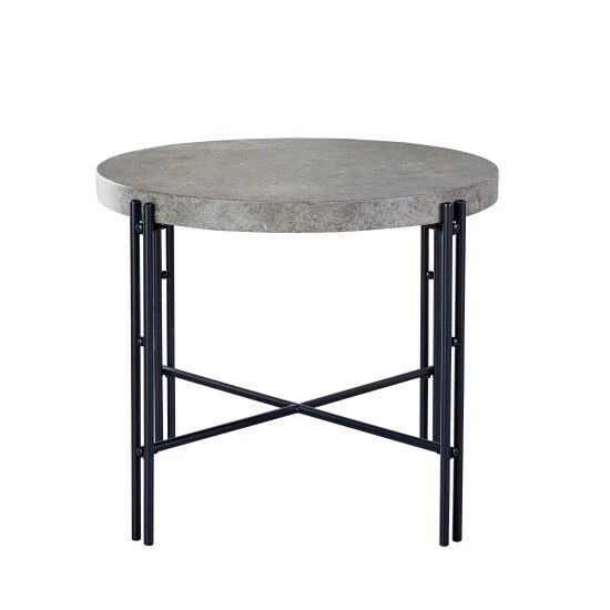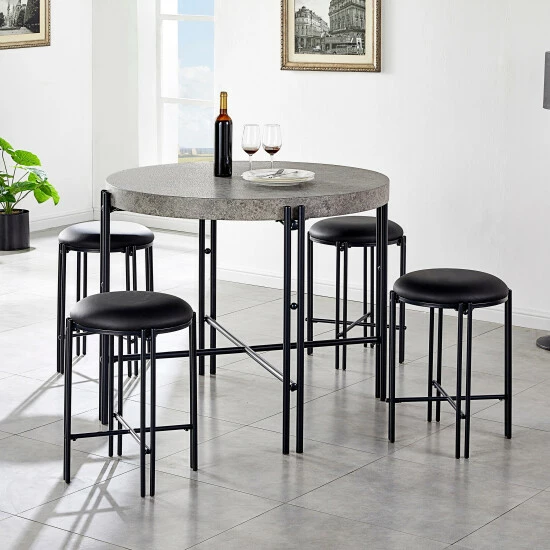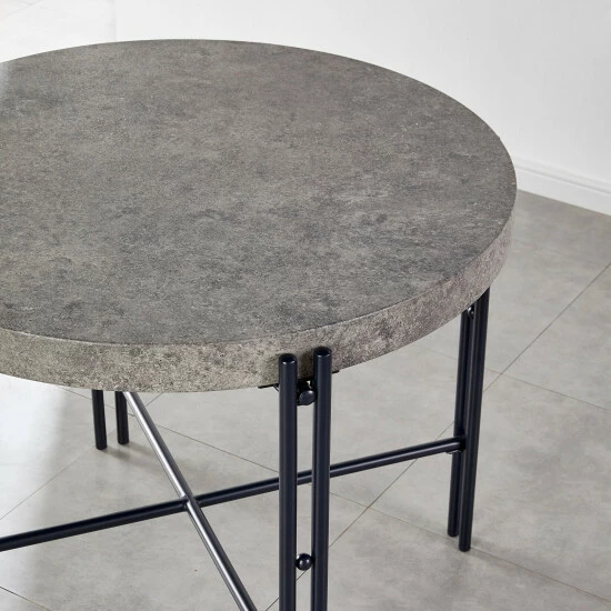 This unique dining table will bring a modern industrial style to your dining space with its black tubular metal frame and stylish faux concrete top. The iron base is finished in black and features an X-stretcher for added strength. The mottled grey top will blend nicely with many styles and colors.