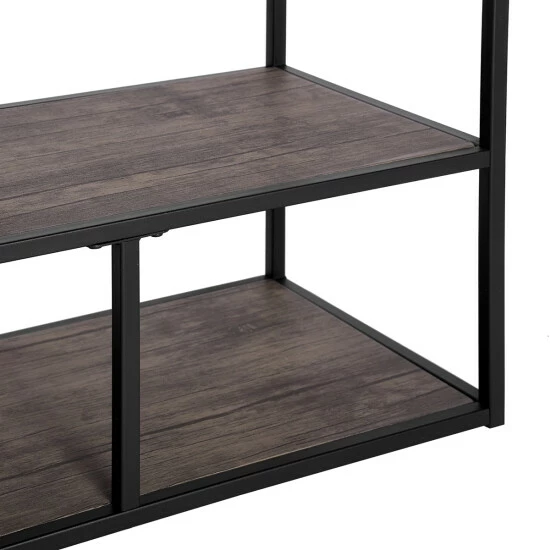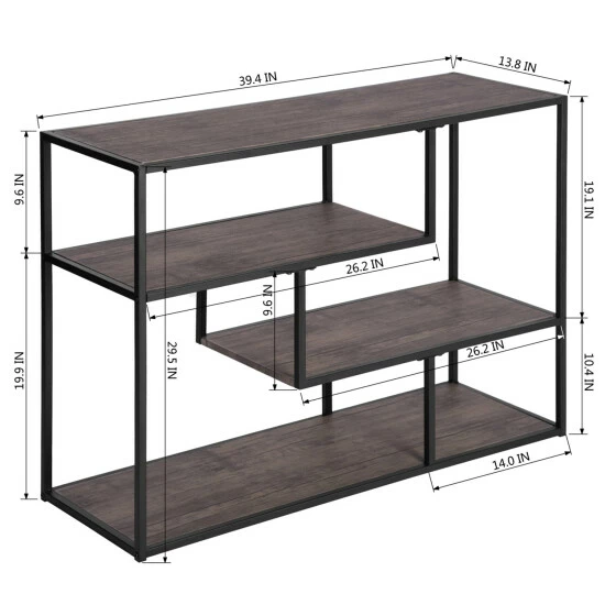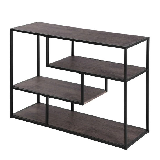 Give yourself an easy way to display your favorite items with this industrial style console bookcase. Not only do the MDF wood shelves and iron frame of this modern table create natural beauty matched by sleek appeal, but they also enhance the durability, stability, and strength of this piece. It is constructed with four multi-level shelves that give you plenty of storage and show a sleek industrial look.