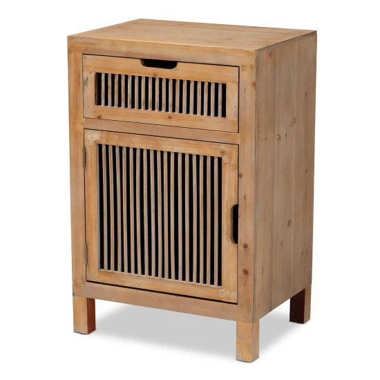 Adorn your space with a rustic and cozy look with the sweet and charming design of this oak finished nightstand. The sturdy construction is highlighted with unique, ribbed storage areas that allow for display as you tuck away your treasures.