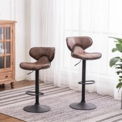 Maneuver with ease and luxuriate in style with the sleek and sumptuous design of this pair of bar stools. Robust faux leather is padded with high quality foam for a cozy and supportive seat, and features like a swivel function and foot rest ensure relaxation. The easy gas-lift adjustment will take your seating to new heights.