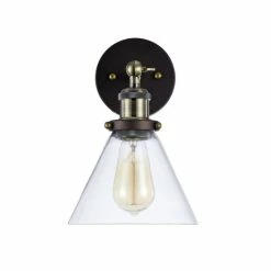 This chic and classic wall sconce features an oil rubbed bronze finish that will complement many industrial, urban, loft, and transitional decors. The clear glass shade allows the light to escape in all directions while adding a bit of class to any space.